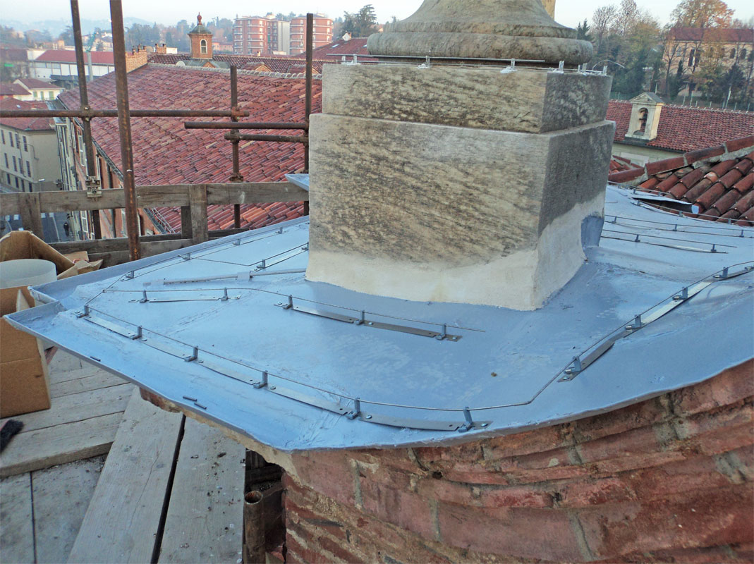 - Restauro elementi lapidei dei cornicioni e fregi sul frontone